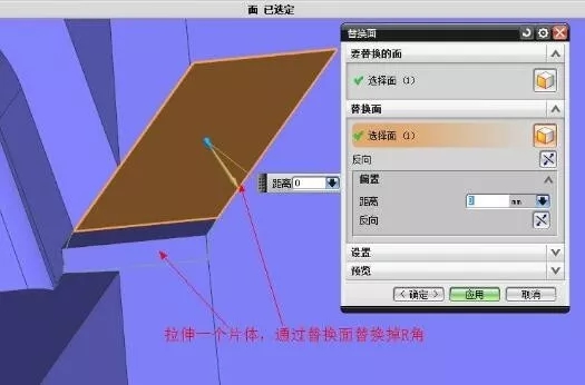 1.拉伸一个片体,替换掉R角