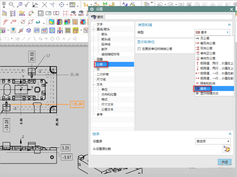3.如果要修改标注数据显示边框,点击公差,如下图: