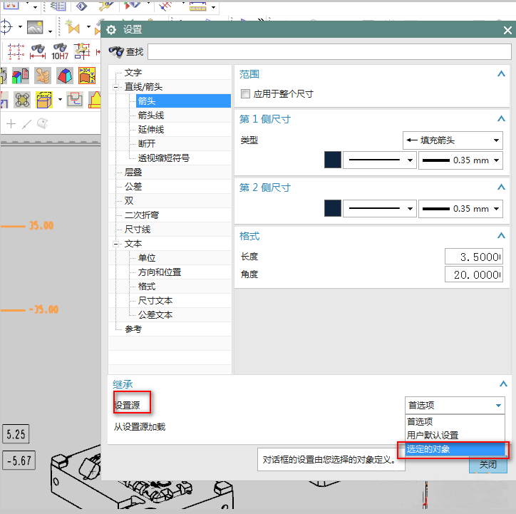2.如果要修改标注箭头,点击直线箭头里面的箭头设置,如下图: