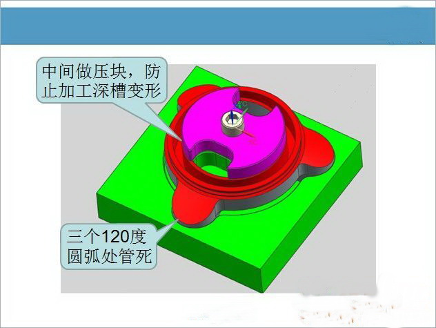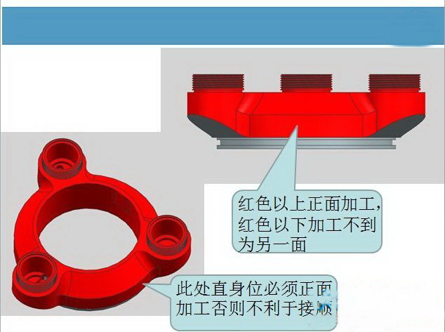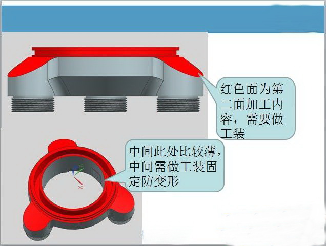 4 反面有工装要求,正面还没有加工到位,工装要避开在此面加工,如下图: