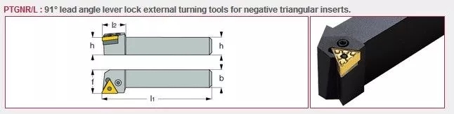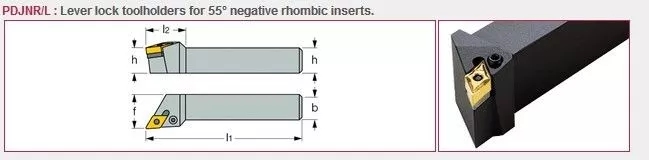 由于刀片形状限制,此刀杆最小加工径在14~16左右,所以不如上两款刀杆应用广,但由于刀尖角比上两款小,切削更轻快,亦能仿形。
