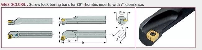 中小孔径精车常用刀杆之一,一般加工孔径不大于20~25,最小约8~10,切削比SCLCR轻快,刀片刃数比CC多一半,经济性好。