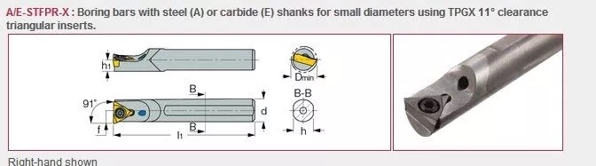 内孔精车中常用的刀片还有TC/TP(T型正前角刀片7°/11°后角)