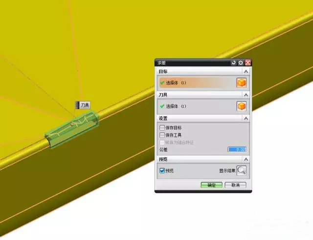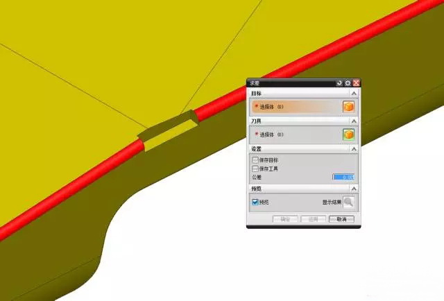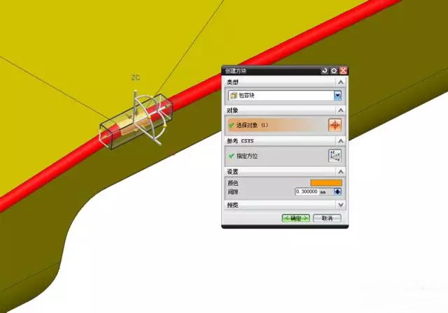 2. 存在复合面的R角用“删除面”命令很难去除,我们可以将复合面的R角部分做一个包块,然后求差掉,如图所示