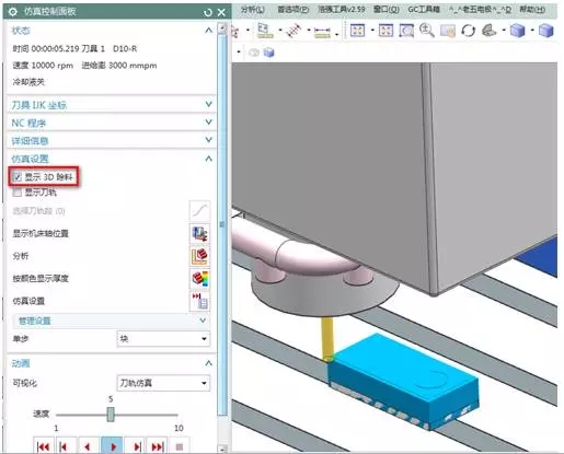 10、在仿真设置里把显示3D材料打勾,点击开始仿真即可,如下图: