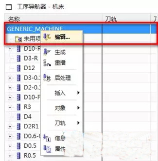 2、在机床视图查看程式,点击顶项文件夹右键-编辑,如图: