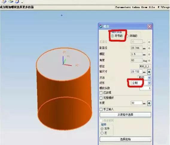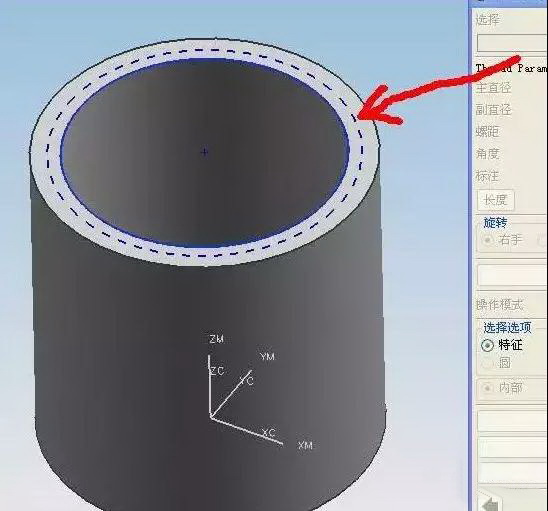 7.选取几何体。注意做螺纹时是内螺纹就选里面,反则之。