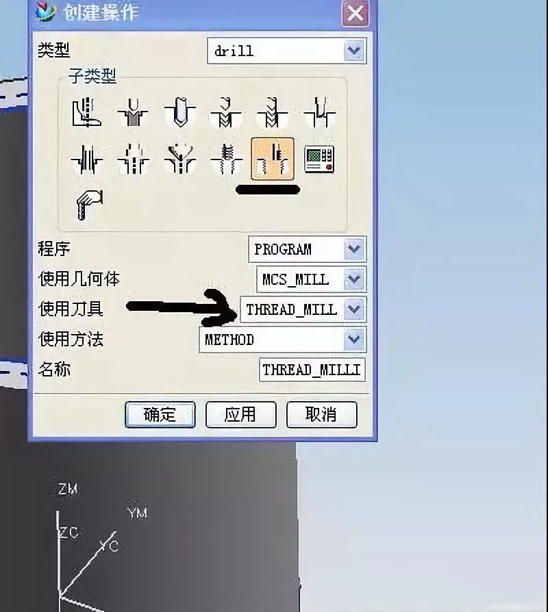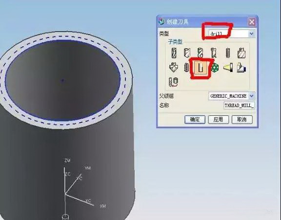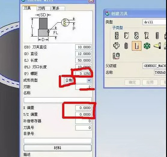 选择DRILL刀具创建模块 选择THREAD_MILL创建刀具