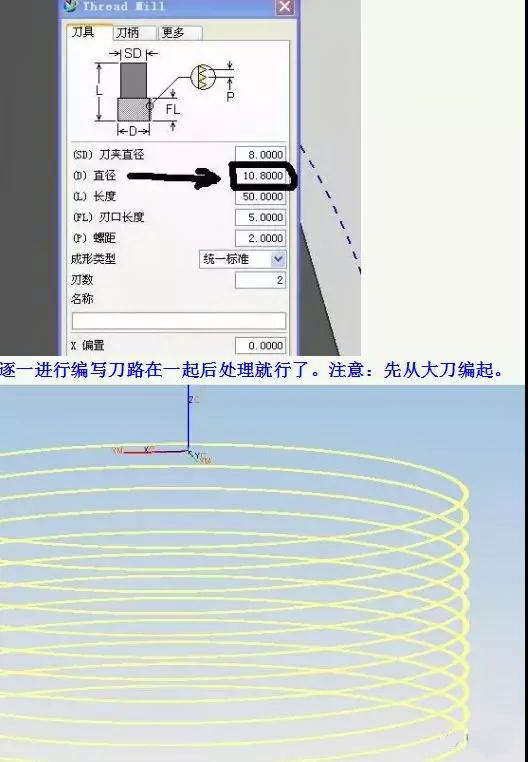 创建刀具时如果使用D10-M2的螺纹刀就可以创建如 D11.7-M2 D11.4-M2 D11.1-M2 D10.8-M2 D10.5-M2 D10.2-M2 D10-M2 这就是骗刀的方式