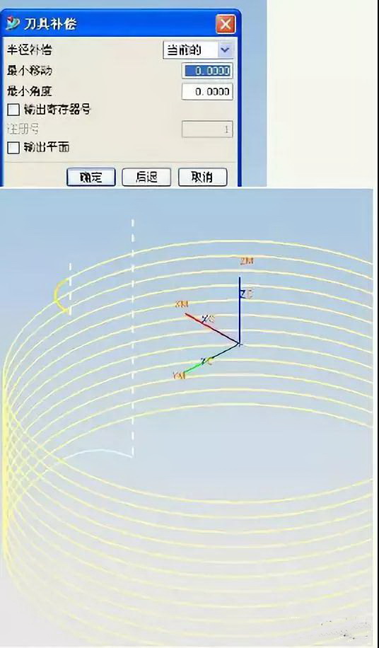 解决方法:点击 、机床、 把 、退刀、勾上、再点刀具补偿、把半径补偿改成当前的。 下面的输出平面勾掉不要。