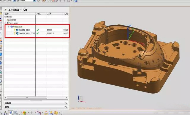 步骤二:二次开粗使用基于层必须满足的第二个条件---开粗与二粗都使用同一WORKPIECE,二粗操作需基于开粗操作后面,保持顺序。