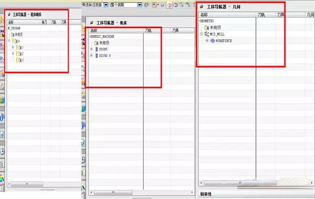 步骤三:二次开粗使用基于层必须满足的第三个条件---程序顺序视图、机床视图、几何视图、加工方法视图、四个视图程序组顺序要一致。