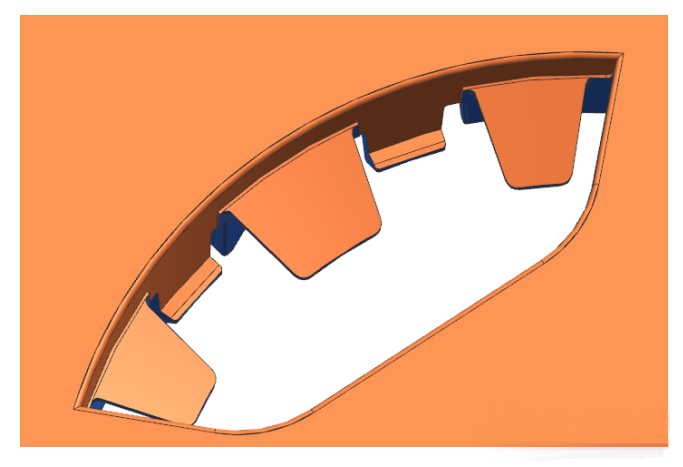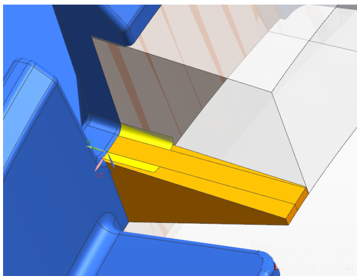刚入门的朋友会有纠结,有一部分黄色面留在后模了,其实这样做是完全可以的,那一点黄色面的面积很小,对于产品的外观和装配等没有任何影响,而我们这样处理一下,模具很好做了