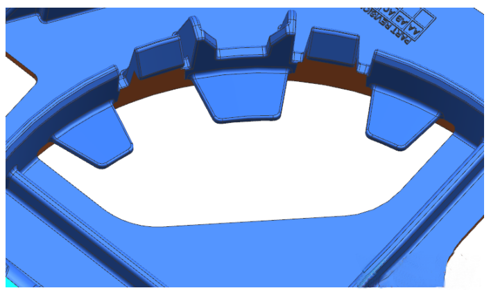我们看到这位朋友只填补了一小块,就感觉力不从心了,不是因为软件问题,主要是模具经验欠缺