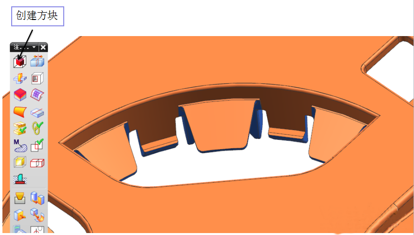 实体补孔是UG分模的一大优势,特别是对于一些异型孔的填补,UG更是优势明显,但是须具备一定的模具知识,否则还是会感觉困难,以下面例子来说明吧