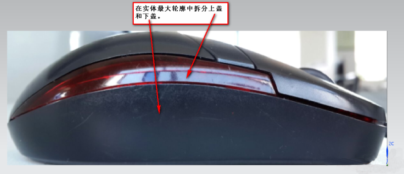 首先看图片的效果下盖和中壳的相交位置是产品最大轮廓线,模具通常叫作分型面+