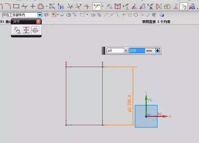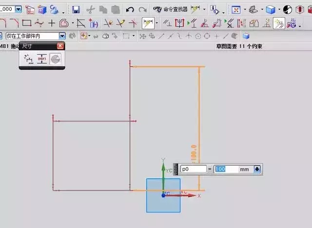 创建自动判断的约束在开着,然后我们来标注尺寸,如下图: