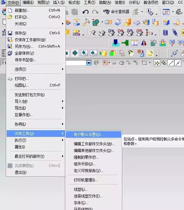 1、找到文件-实用工具-用户默认设置,如下图: