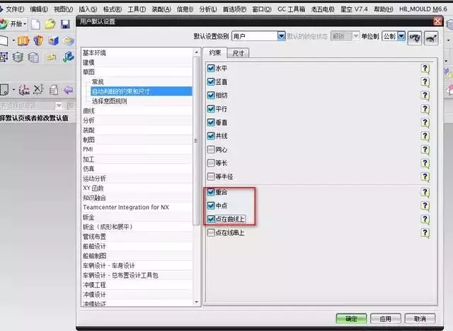 2、找到草图里面,要把下图位置勾起来,这样才能自动约束,如下图:
